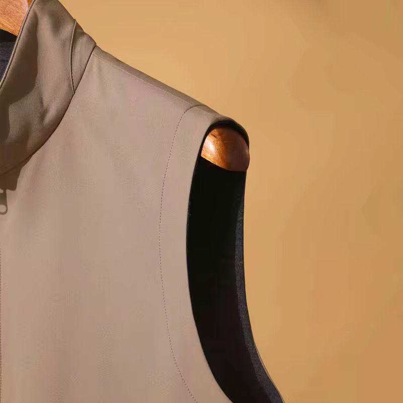 Lightweight and versatile softshell vest in a refined sand tone with a clean, modern design. Crafted from a smooth and flexible fabric that offers comfort and freedom of movement. Features a high collar, durable two-way YKK zipper, and discreet side pockets for a sleek finish. Perfect for layering or wearing on its own during transitional weather.